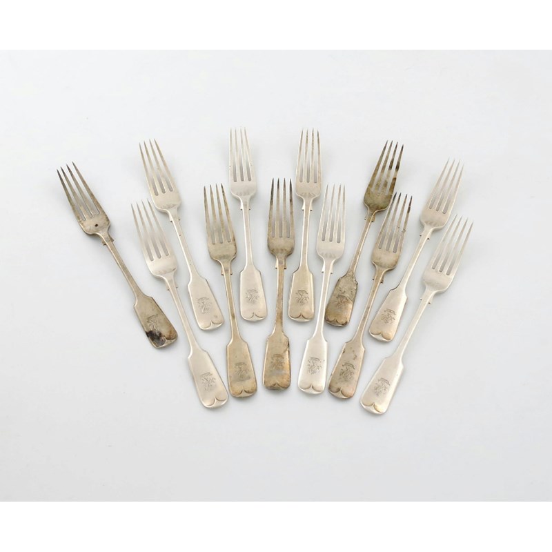 A set of twelve late-Victorian silver Fiddle pattern dessert forks