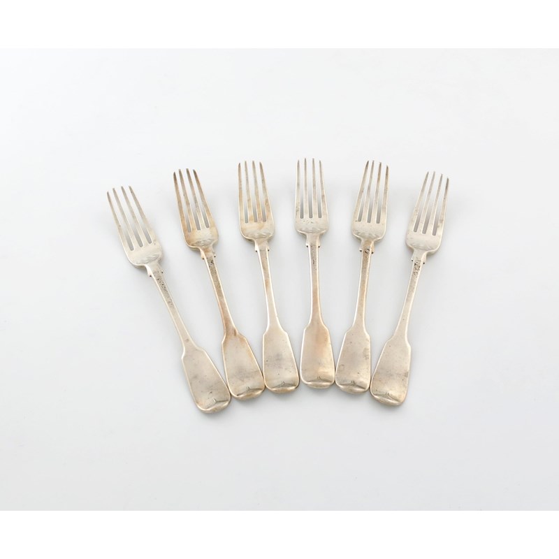 A set of six Victorian silver Fiddle pattern table forks
