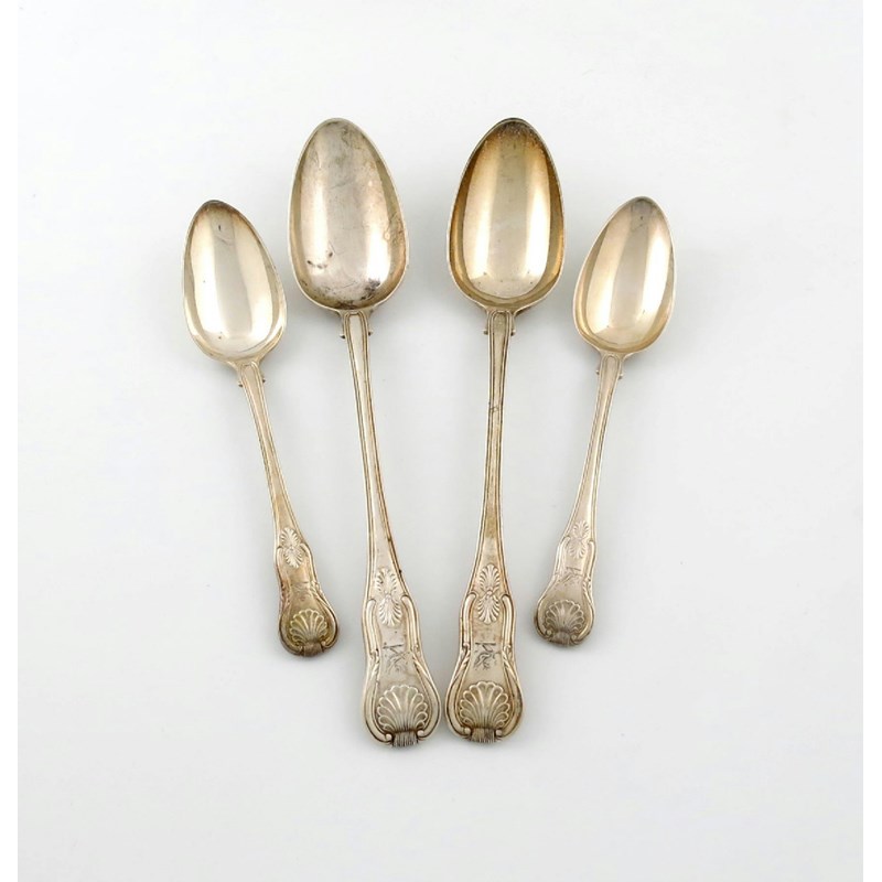A pair of George III silver Kings Hourglass pattern basting spoons,
