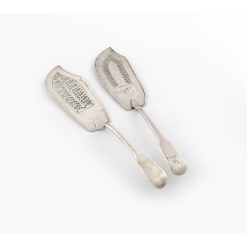 Two 19th century Fiddle pattern silver fish slices
