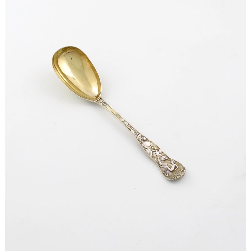 A Victorian silver-gilt Bacchanalian pattern fruit serving spoon