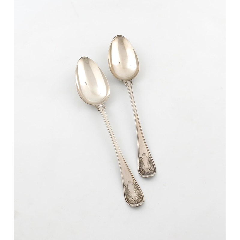 Old English Thread shape with foliate terminals, length 28.5cm, approx. weight 6.5oz. (2)