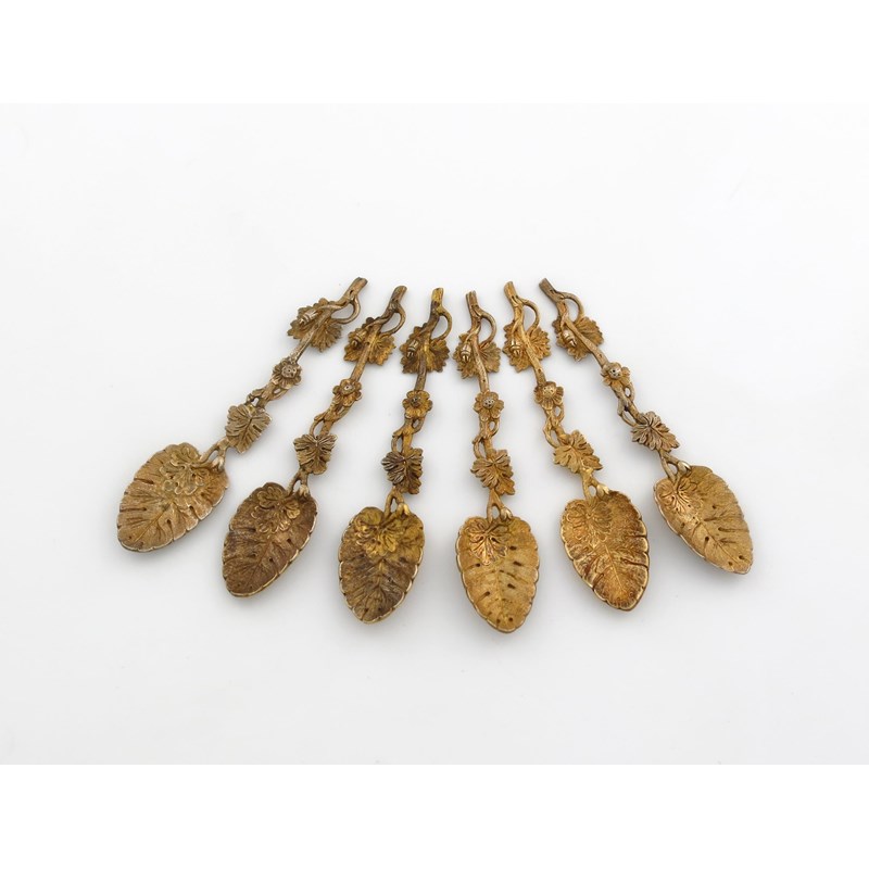 A set of six Victorian silver-gilt naturalistic teaspoons,