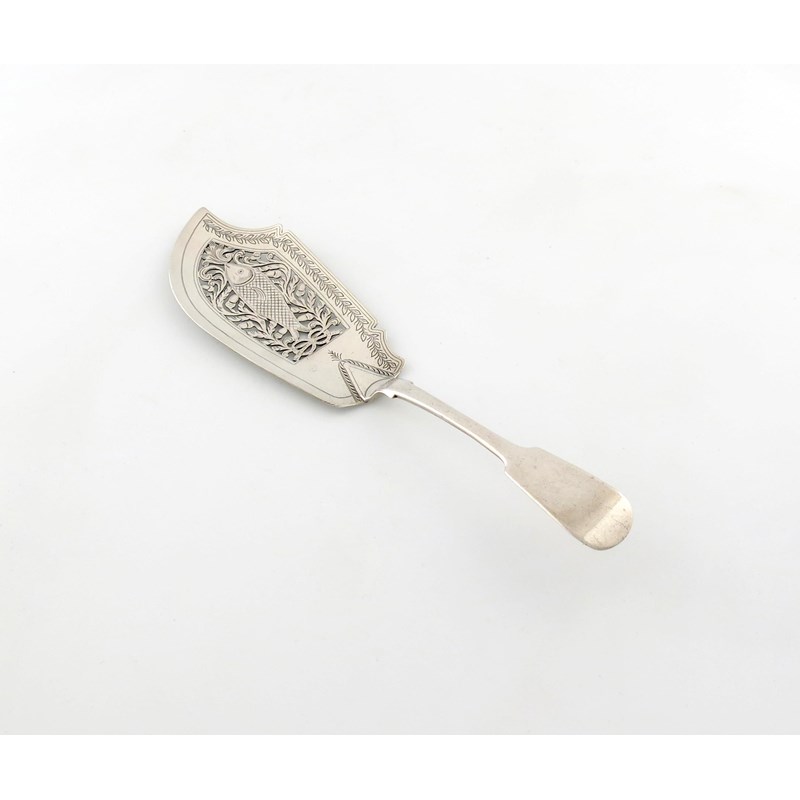 plain terminal, the blade pierced and engraved with a fish within acorn and scroll decoration, length 30.2cm, approx. weight 4.4oz.