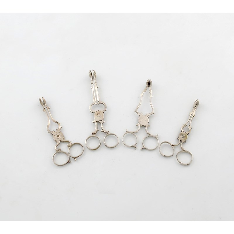 comprising: an Irish pair, Dublin, and three London pairs, circa 1760, shell bowls, scroll arms, ring handles, two with scratch initials, approx. weight 4oz. (4)