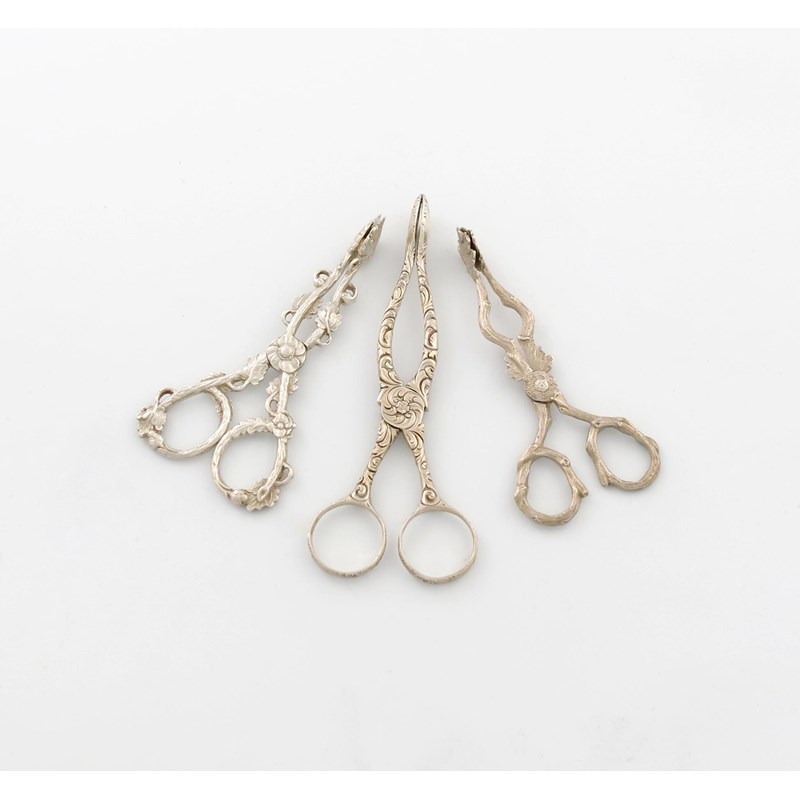 ring handles, foliate decoration, foliate bowls, plus a pair of Victorian naturalistic sugar nips, by George Adams London 1971,and another pair of Victorian naturalistic sugar nips, by Yapp and Woodward, Birmingham 1851, approx. total weight 3.3oz. (3)