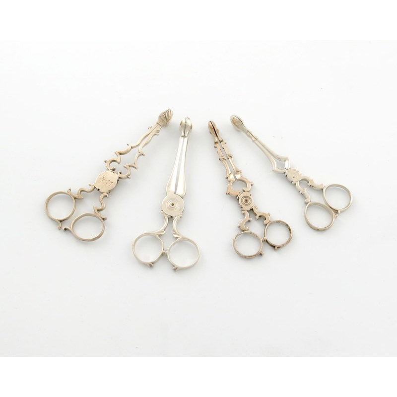 A collection of four pairs of 18th century silver sugar nips,