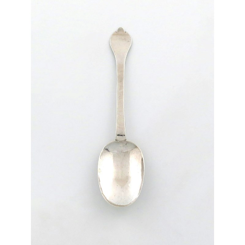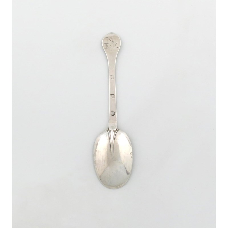 the oval bowl with a plain rat-tail, the reverse of the terminal scratch initialled 'M' over 'E.K', length 17.8cm, approx. weight 1oz.