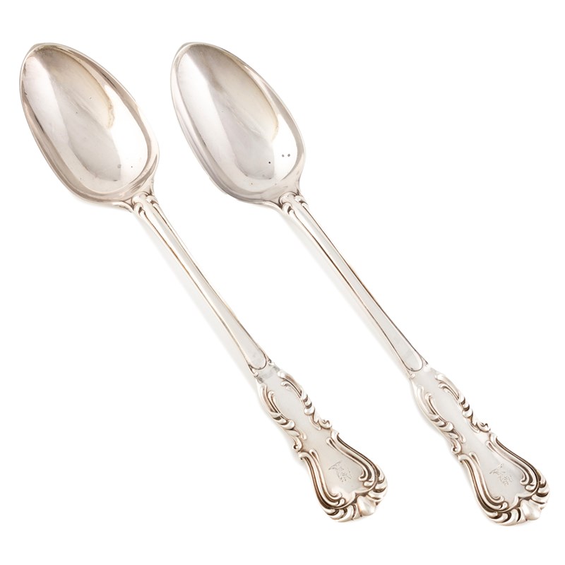 A pair of Victorian silver Devonshire pattern basting spoons,
