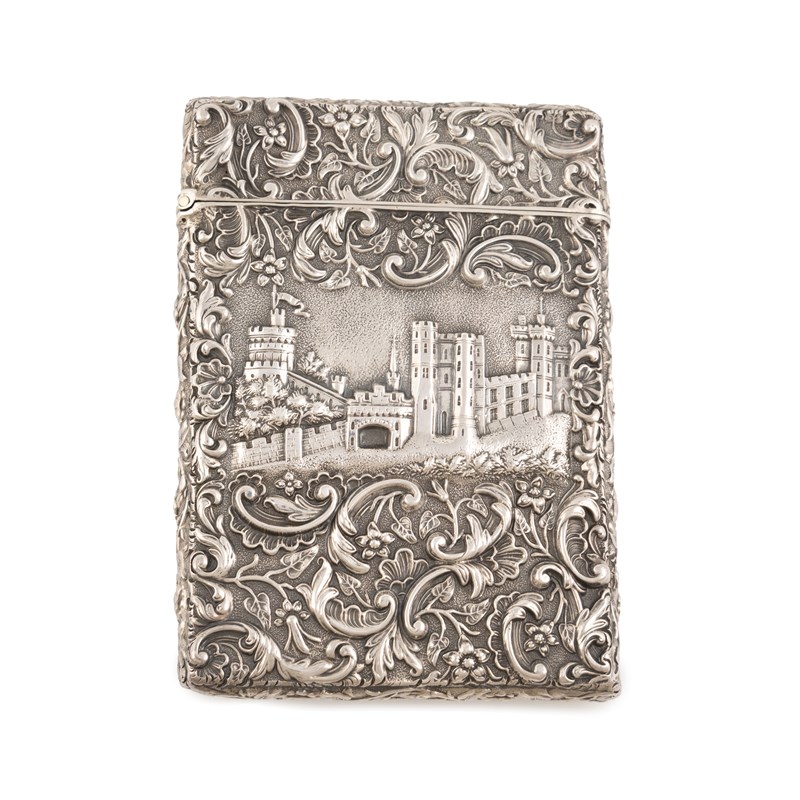 A Victorian silver double-sided silver 'Castle-top' card case, Windsor Castle and Westminster Abbey,