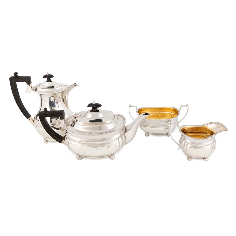 A matched silver four-piece tea set,