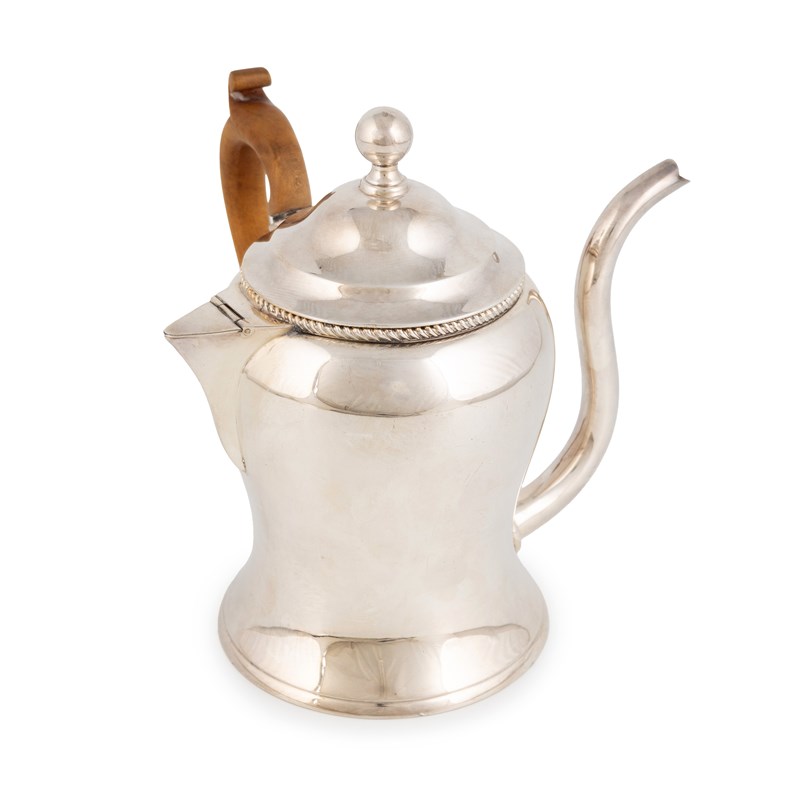 baluster waisted form, scroll handle, the pull-off cover with ball finial, the water compartment with a hinged cover, height 16cm.