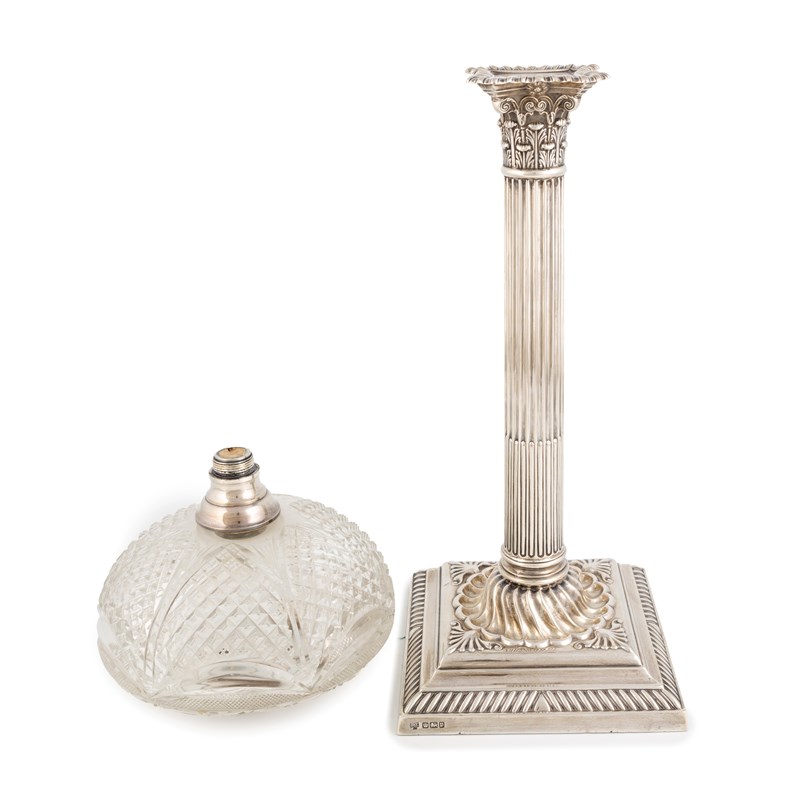 An Edwardian silver Corinthian column oil lamp,