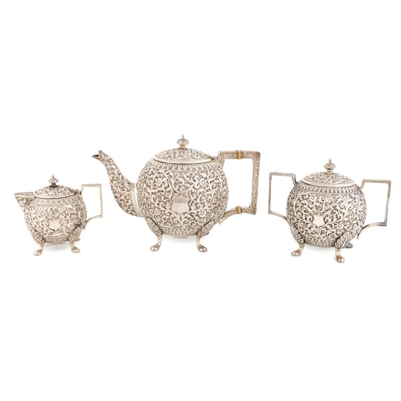 λ An Indian silver three-piece tea set,