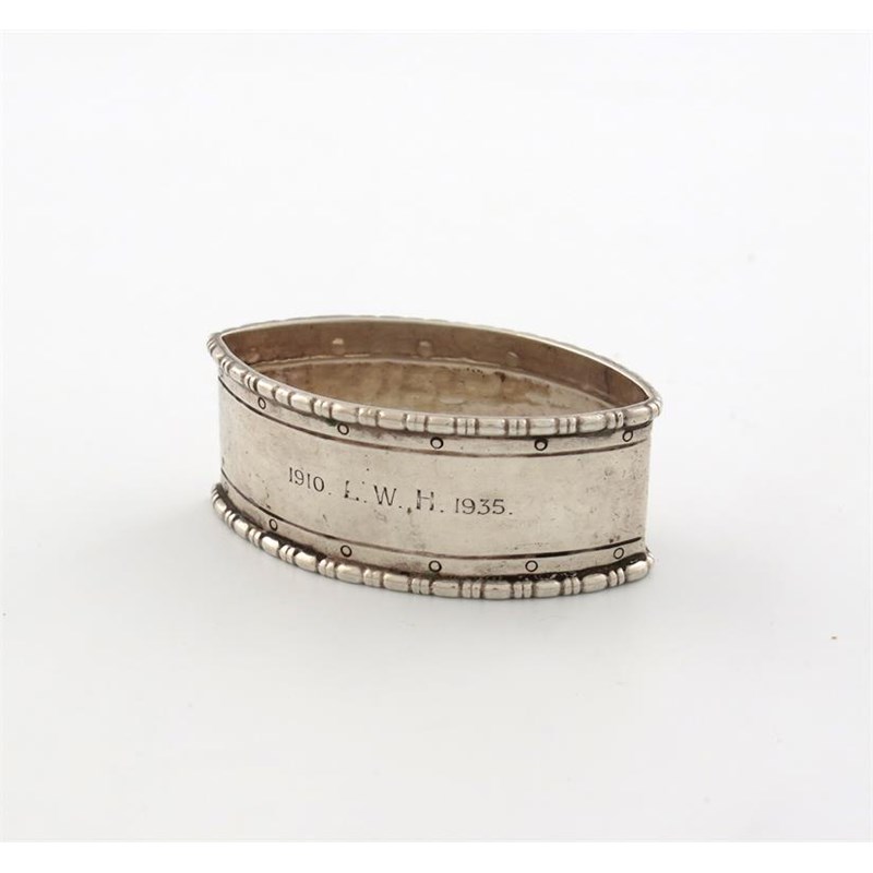oval navette form, spot-hammered decoration, length 6.5cm, approx. weight 1.2oz.