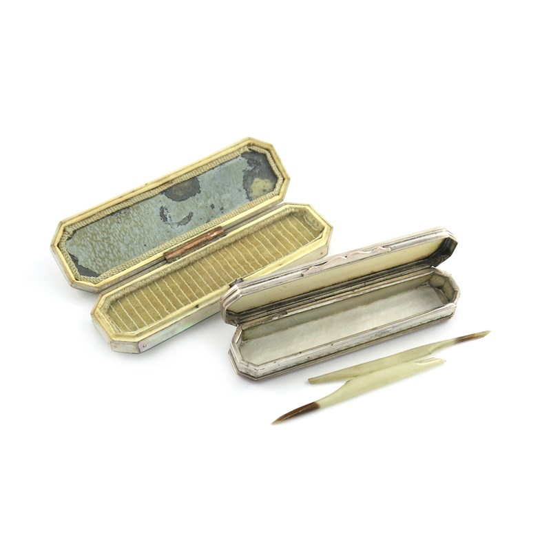 λA George III gold-mounted mother-of-pearl toothpick box,