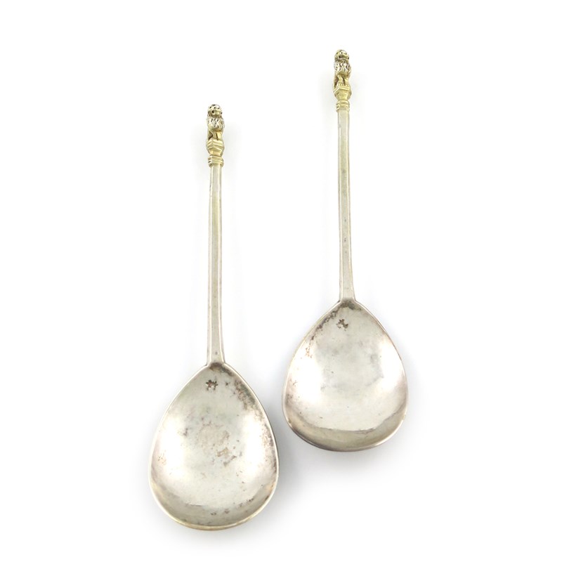 A pair of Elizabeth I West Country silver Lion Sejant spoons
