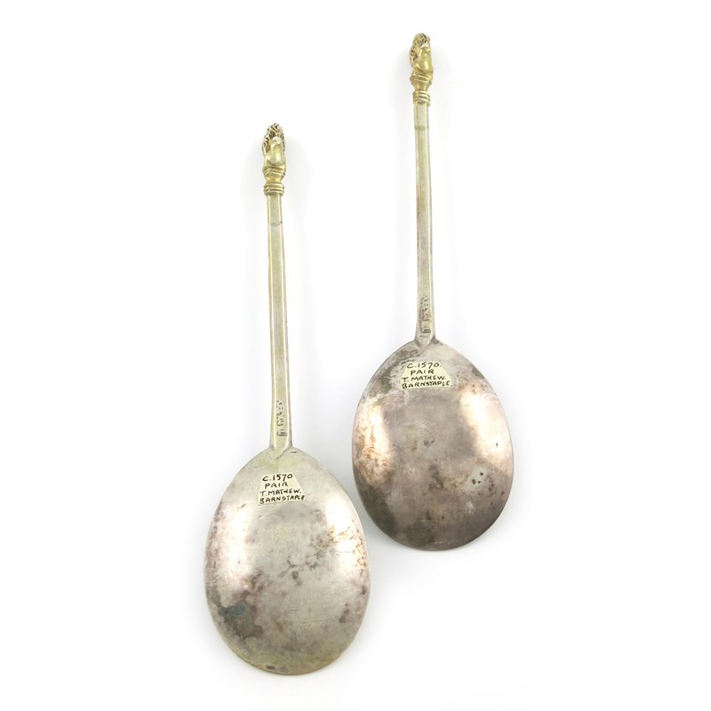 A pair of Elizabeth I West Country silver Lion Sejant spoons,