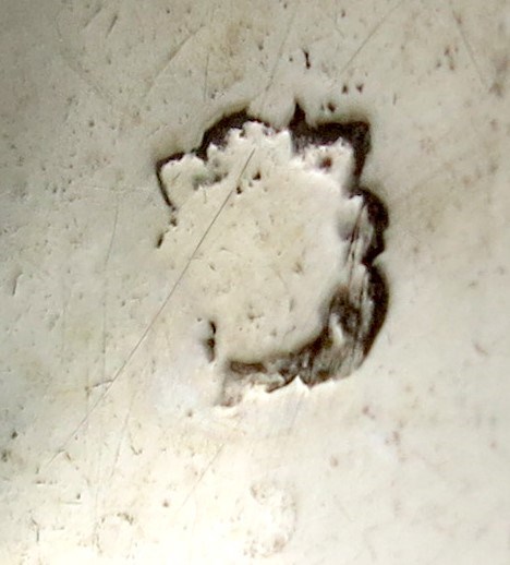 fig-shaped bowl, tapering faceted stem, the seal-top finial scratch initialled 'E.M', length 16.8cm, approx. weight 1.3oz.