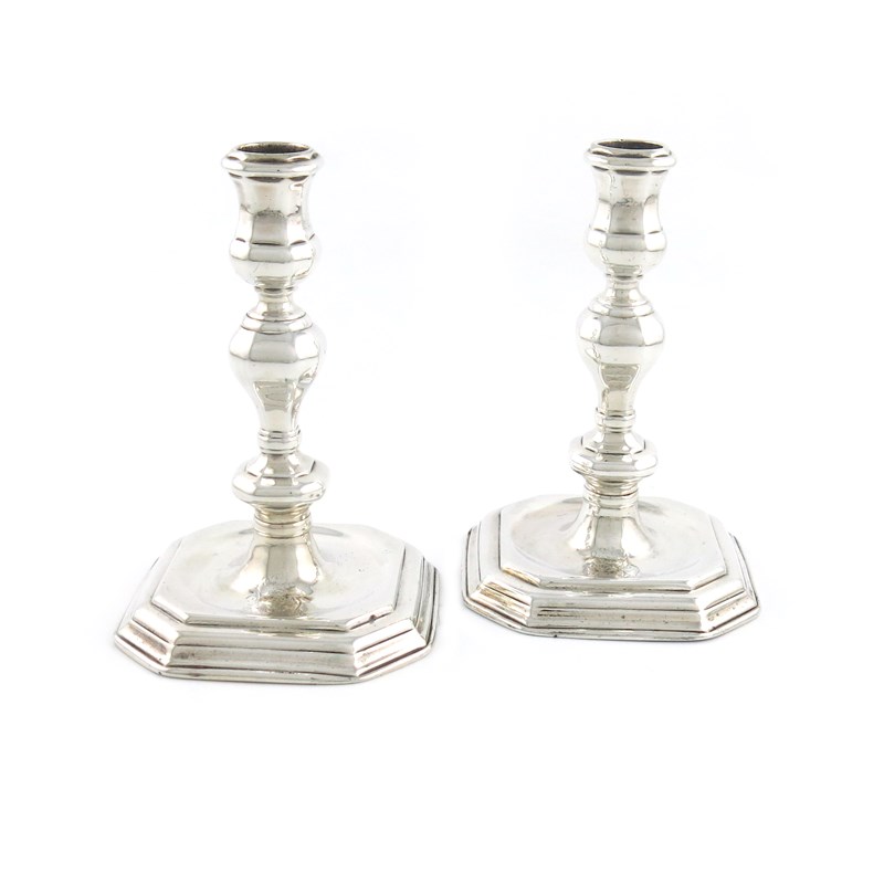 A pair of Queen Anne cast silver candlesticks