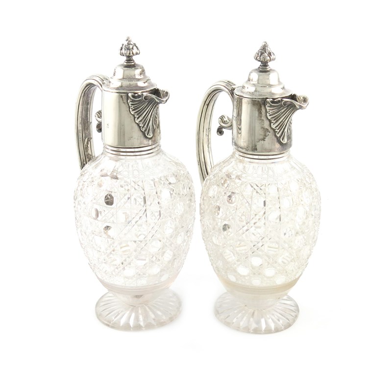 A matched pair of late-Victorian silver-mounted claret jugs,