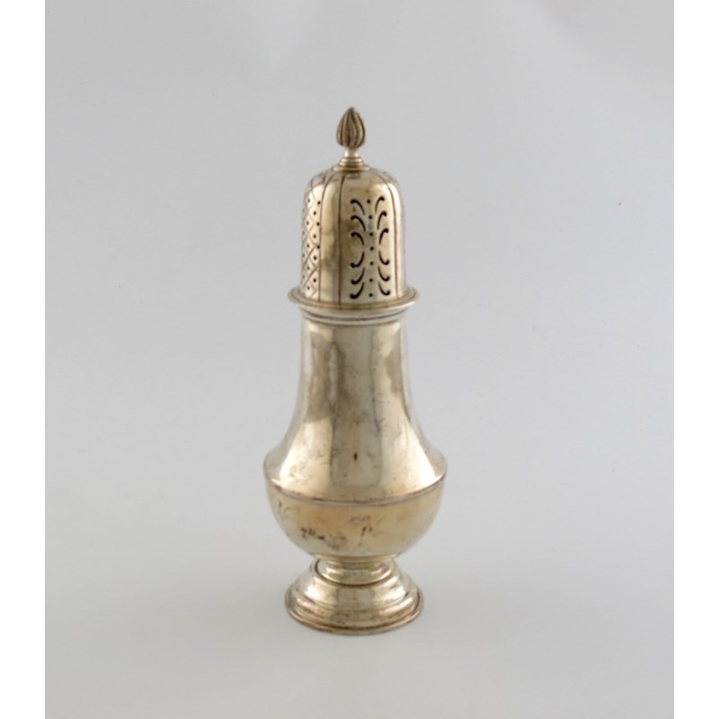 A silver sugar caster