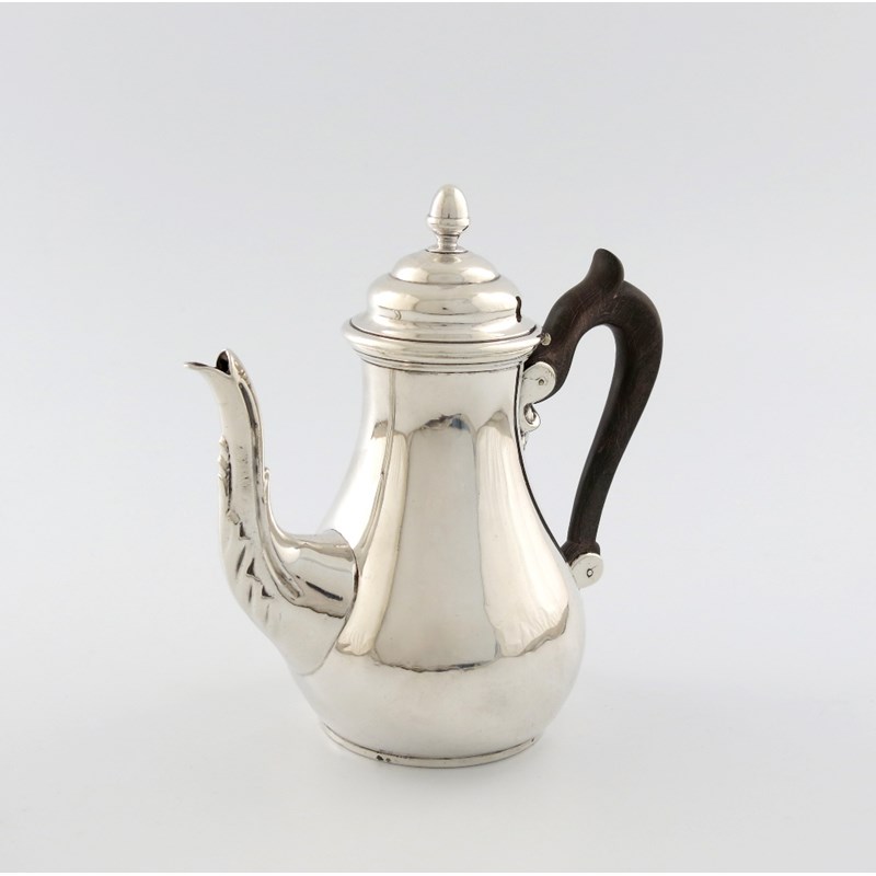 baluster form, scroll handle, domed hinged cover with an acorn finial, height 16.5cm, approx. weight 14.5oz.