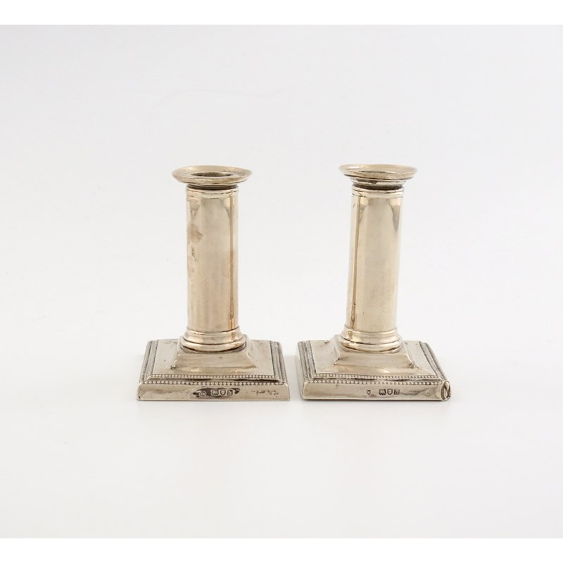circular columns, on raised square bases with beaded borders, height 11cm. (2)