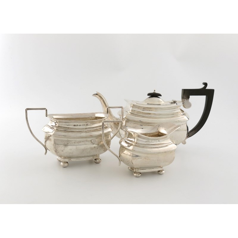 shaped rectangular form, scroll handles, domed cover, on four bun feet, length handle to handle 28.2cm, approx. weight 30oz. (3)