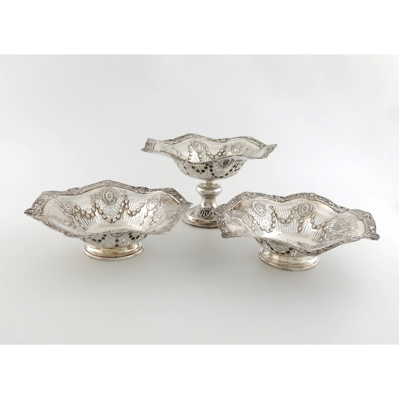 A matched suite of three late-Victorian and Edwardian silver dishes,