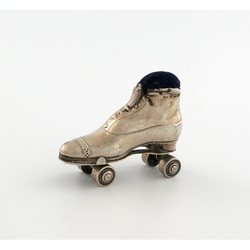A silver novelty pin cushion modelled as a roller stake,