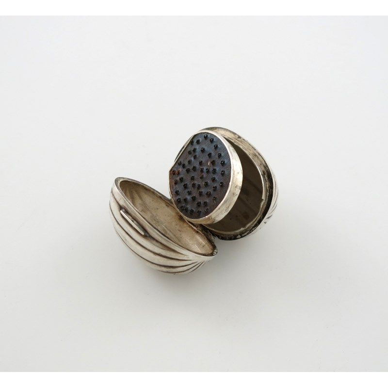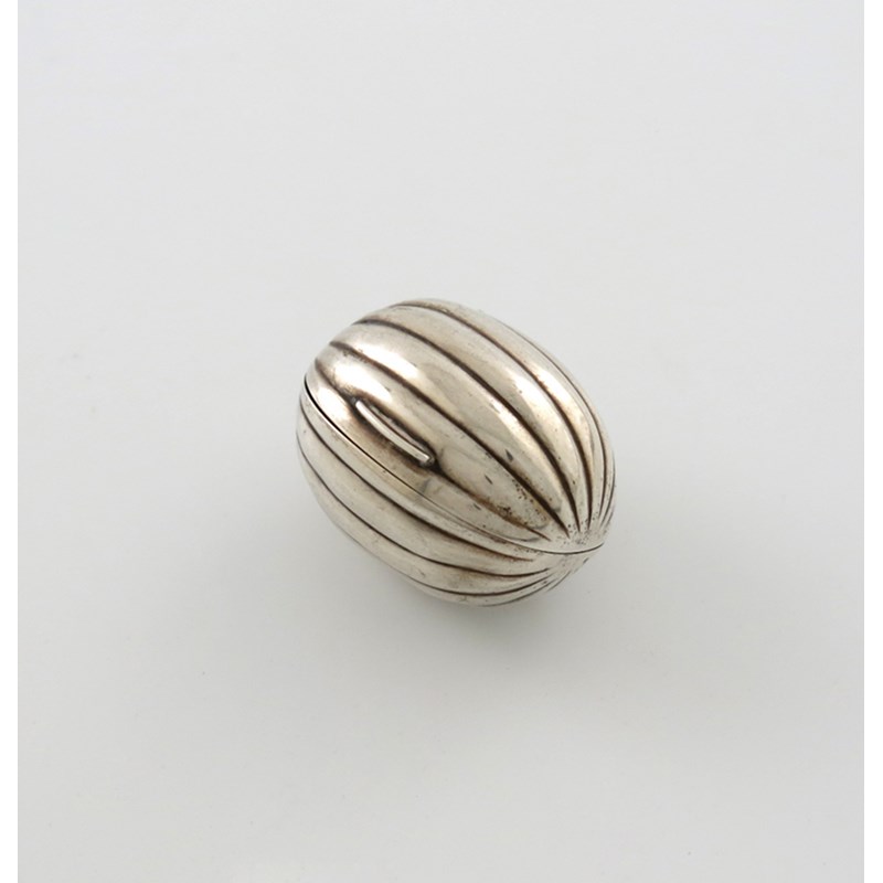 oval fluted melon form, the interior with a hinged grater, length 3.8cm, approx. weight 0.6oz.