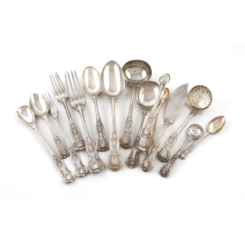 A Victorian silver matched Kings pattern canteen for twelve