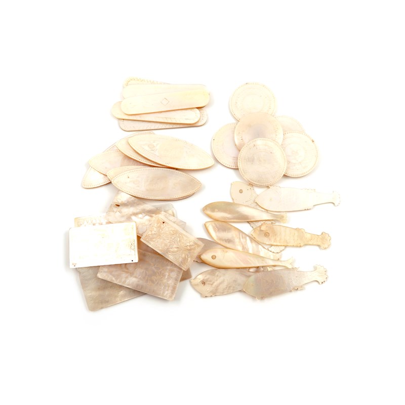 A collection of 19th century carved mother-of-pearl gaming counters,