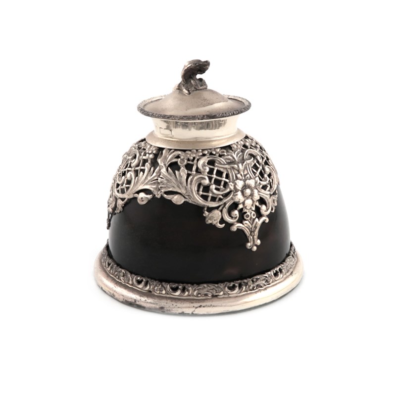 λAn Edwardian silver-mounted tortoiseshell inkwell