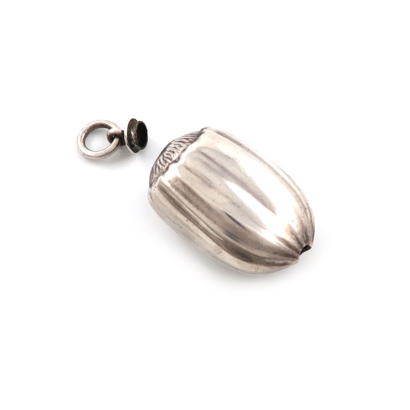 modelled as a hazelnut, with a ring attachment (damaged), length 3cm.