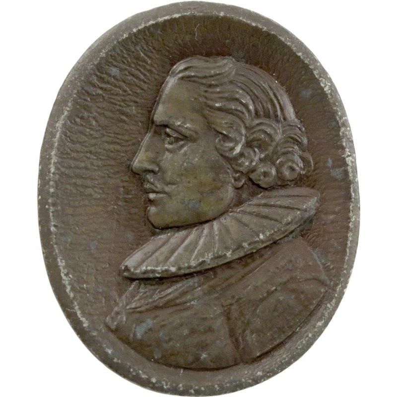George Villiers, 1st Duke of Buckingham (1592-1628), uniface oval bronzed-lead medal, c. 1628, bust left wearing ruff collar and garter George on ribbon, on 'wavy' background, rev., engraved "G. VILLERS DVKE BVCKIN", 43 x 35mm (Hodgkin 13; MI - ; Platt - ). Very fine and rare.