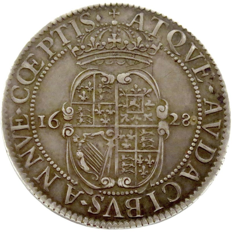 Briot made a number of pieces that are traditionally described as patterns for a halfcrown. The style and Briot's use of a rocker press have always helped with this attribution. However the legend, taken from Virgil, which translates as "Grant, O King, a prosperous course and favour bold undertakings", together with the date, would seem to link in with the proposed second expedition to La Rochelle.