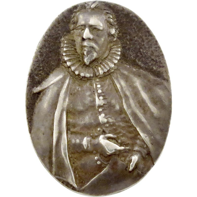 Richard Weston, 1st Earl of Portland (1577-1634/1635), statesman, Chancellor of the Exchequer and Lord Treasurer, small oval silver medal, unsigned, standing bust with head turned three-quarters left, wearing high ruff collar, buttoned doublet and gown, holding papers in his left hand, rev., blank, but crudely and faintly inscribed "Sir Rich Weston", 26.5 x 20mm (MI - ; Platt - ). Good very fine and extremely rare and perhaps unpublished.