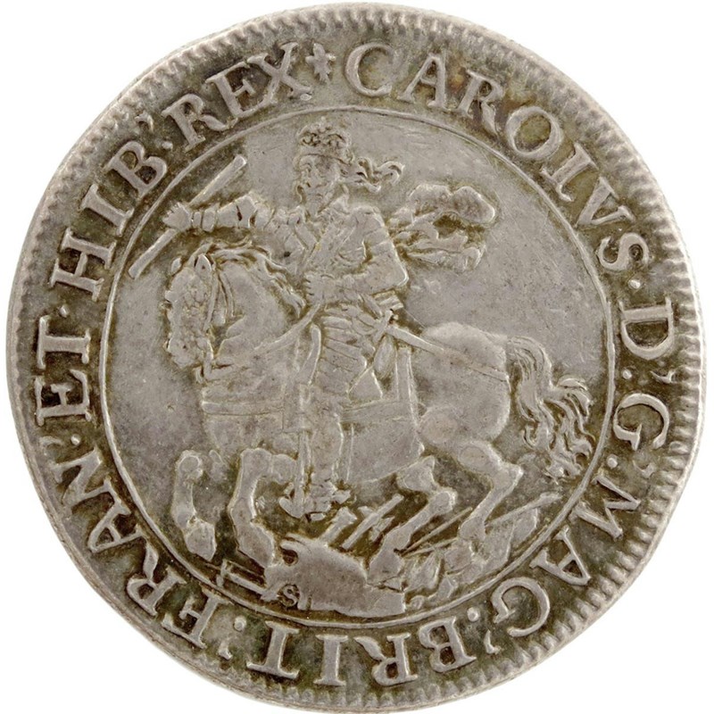 Charles I, The Scottish Rebellion, silver medal, 1639, by Thomas Simon, signed S (on armour beneath horse), Charles I on horseback to left, holding staff and trampling armour, CAROLVS DG MAG BRIT FRAN ET HIB REX, rev., hand issuing from the clouds holds a cord uniting a rose and a thistle, QVOS DEVS, 30mm. (MI 282/91; Eim. 130; Platt, type B, p. 150). Very fine, some minor scuffs on reverse.