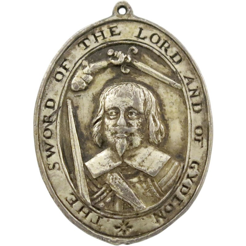 Robert Devereaux, 3rd Earl of Essex (1591-1646), Captain-General and Commander-in-Chief of the Parliamentary army, oval gilt-silver Military Reward badge, 1642, armoured bust, almost full-face, with sash over shoulder, broad lace collar, and sword to (his) right, above a hand from heaven brandishes a sword, THE SWORD OF THE LORD AND GYDEON, rev., the two Houses of Parliament with King and Speaker, incuse legend, IN THE MVLTITVDE OF COVNCELLORS THERE IS PEACE, 42.5 x 31mm (MI 296/115; Platt II, type D, p. 82), integral suspension loop. Very fine and rare.