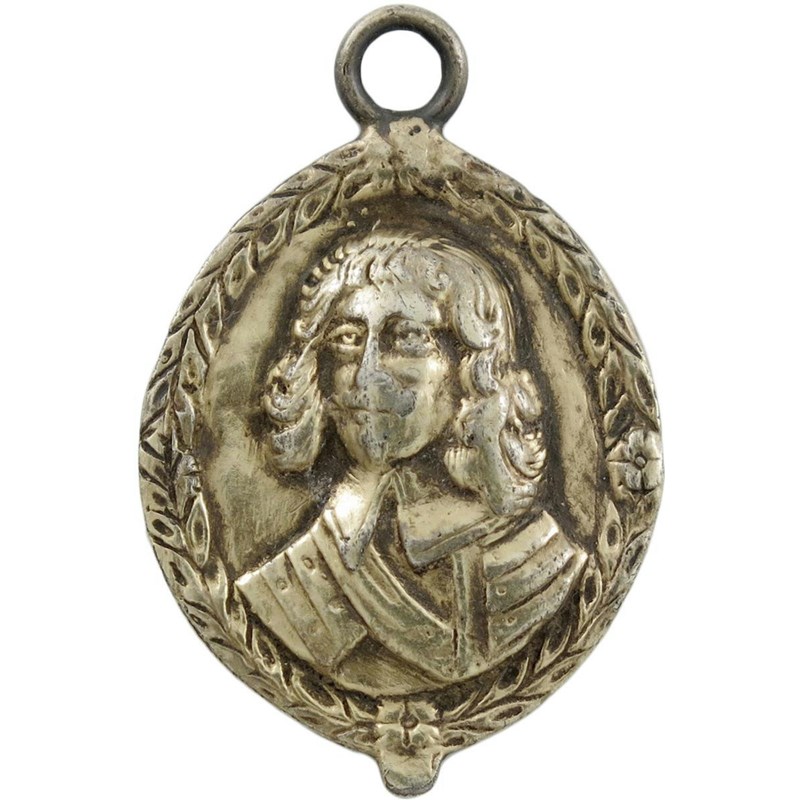 General Sir Thomas Fairfax (1612-1671), 3rd Lord Fairfax, gilt-silver Military Reward, 1645, an oval badge, armoured bust three-quarters left, plain collar, leaf border both sides, raised on obverse, rev., armorial shield of Fairfax, Sr THO FAIRFAX Knt FOR KING & PARLmt, 36 x 23.5mm (MI 317/149; Platt II, type C, p. 103). Very fine.