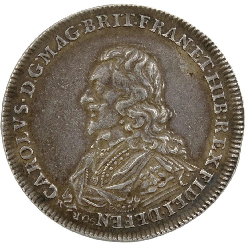 Charles I, Death and Memorial, silver medal, 1649, by Thomas Rawlins, bust left, hair long, wearing armour with lion shoulder-plate, mantle tied at shoulder, and Garter George on ribbon, CAROLVS DG MAG BRIT FRAN ET HIB REX FIDEI DEFENSOR, rev., a rock buffeted by the winds and waves, IMMOTA TRIVMPHANS - IAN 30 1648, 42mm (MI 341/190; Eim. 158; Platt type D, p. 247; vL II, 321). Extremely fine with dark tone, scarce.