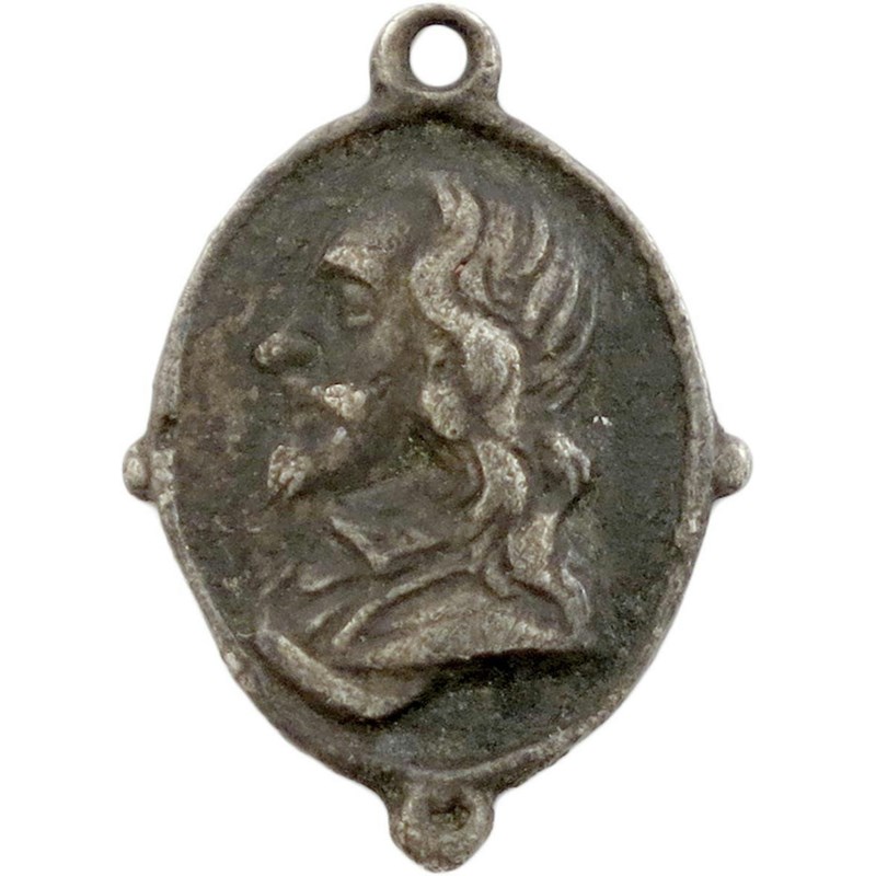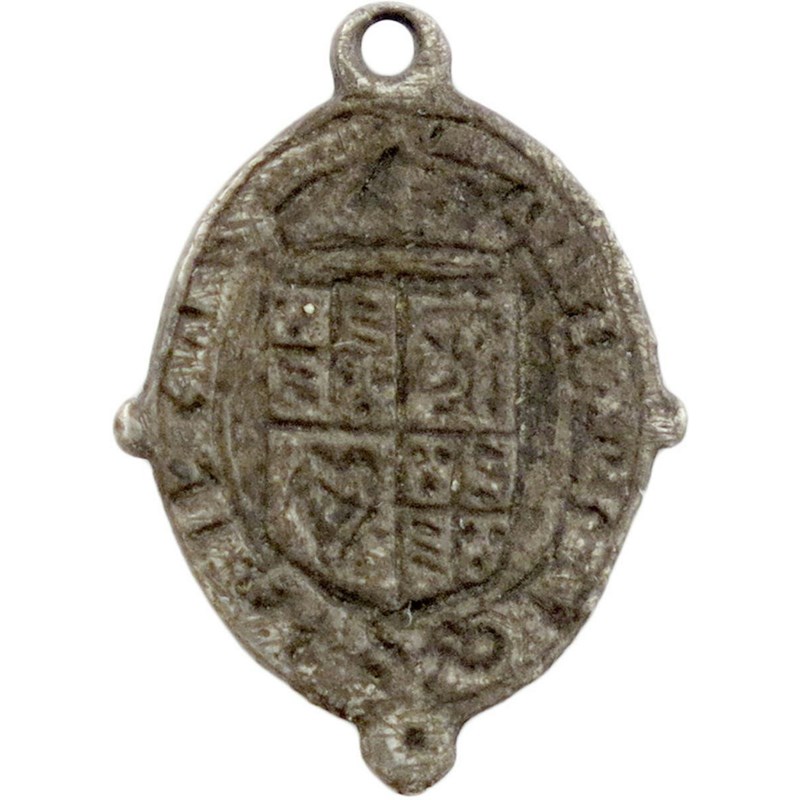 Charles I, a miniature silver Royalist badge, by Thomas Rawlins, bust of Charles I left, his hair falling over plain lace collar, rev., in incuse, crowned shield of arms within Garter, 15.5 x 11mm (MI 363/240; pl. XXXII/18; Platt I, p. 290, type O, not illustrated), integral suspension loop. Very fine with dark tone and very rare.