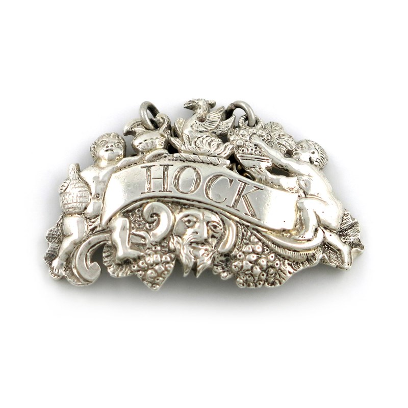 two cupid form, with an urn and ewer with trailing grapevines and a Bacchus mask, incised 'HOCK', length 5.8cm, approx. weight 0.9oz.