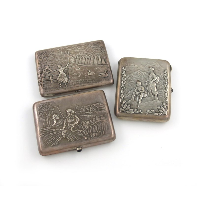 A collection of three Russian silver cigarette cases
