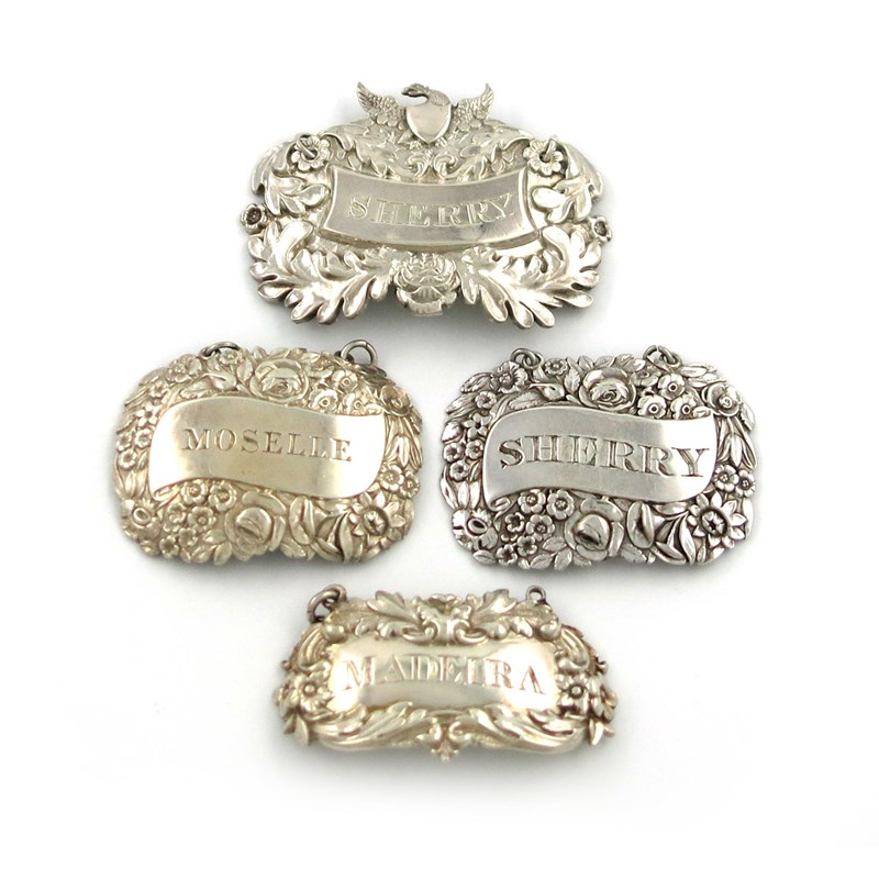 foliate borders, incised 'MOSELLE', 'SHERRY', '(x2) and 'MADEIRA', approx. weight 1.8oz. (4)