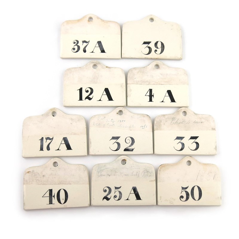 arched rectangular form, numbered '4A, 12A, 17A, 25A , 32, 33, 37A, 39, 40, and 50'. (10)