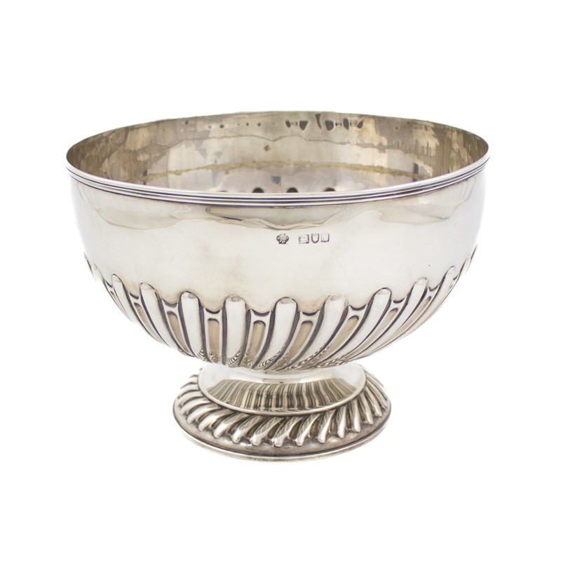 circular form, part-fluted decoration, diameter 23cm, approx. weight 20oz.