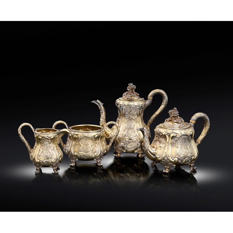 λA Victorian silver-gilt four-piece tea and coffee set,